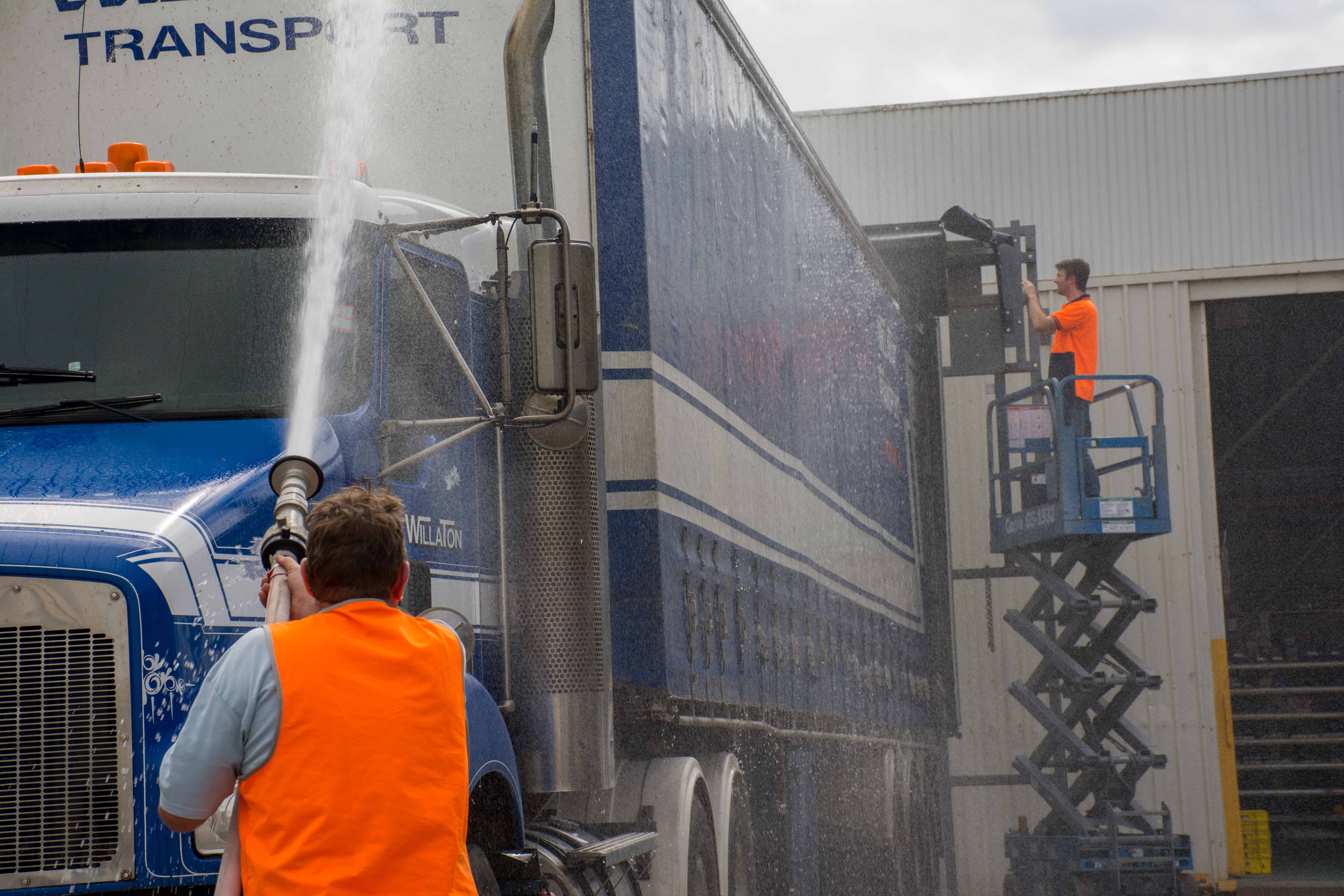 With the aid of a hose and our friends over at Willaton Transport, who kindly provided us with one of their trucks to use as a test subject. We used our onsite simulation dock to mount the Serco S-2200 with Dry Dock by Safetech and test its ability to disperse water away from the rear opening.