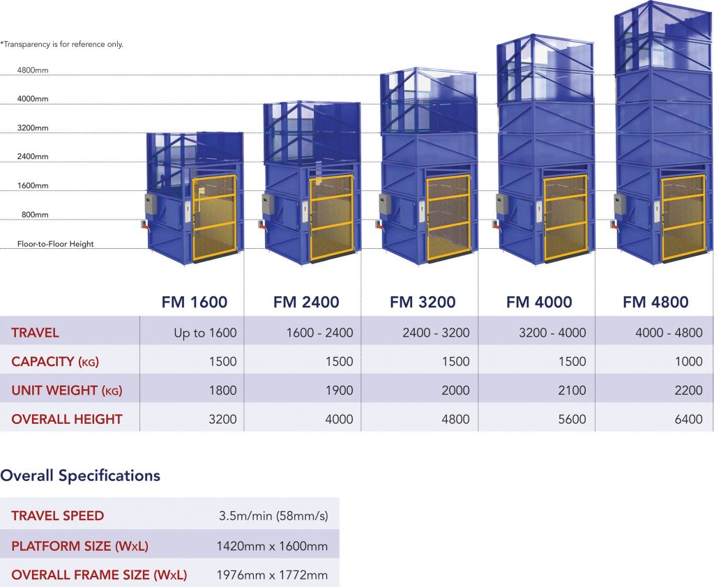 Each model of Freight Mate is capable of servicing any floor-to-floor distance within its specified range,